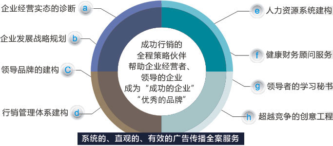 營(yíng)銷(xiāo)創(chuàng)新、視覺(jué)創(chuàng)新、媒體組合創(chuàng)新,向客戶(hù)提供營(yíng)銷(xiāo)推廣的系統(tǒng)解決方案